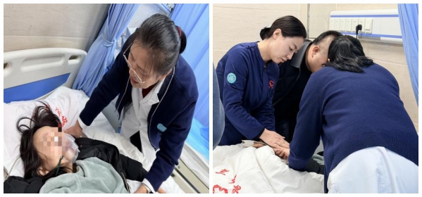 急诊科接诊一名突发呼吸性碱中毒患者,患者呼吸急促、手指麻木僵硬,情绪紧张焦虑。医护人员主动搀扶接诊,快速评估病情、明确病因;耐心安抚、轻声沟通,缓解患者焦虑情绪;规范指导腹式呼吸,调整呼吸节律,纠正过度通气;轻柔按摩双手,改善循环、缓解肢体僵硬;协助调整舒适体位,全程陪伴、动态监测。 在规范诊疗与暖心服务下,患者呼吸逐渐平稳,不适症状明显缓解,情绪恢复稳定,生命体征恢复正常。充分展现了急诊科快速响应、诊疗规范、服务有温度的医疗风采。