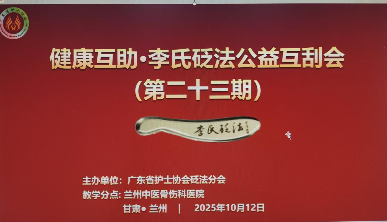 为弘扬虎符铜砭刮痧中医适宜技术,以“健康为本、互助他人”的核心思想,提高医护人员的刮痧能力。甘肃省兰州中医骨伤科医院教学点于2025年10月12日14:00带领本期互刮会学员开始“健康互助”李氏砭法公益互刮会第二十三期第一课:手三阴三阳刮痧手法示范。