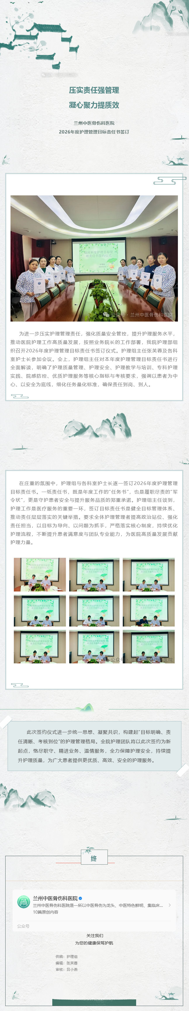 压实责任强管理 凝心聚力提质效一一我院举行2026年度护理管理目标责任书签订仪式