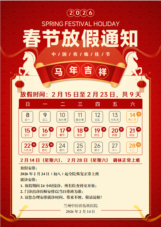 兰州中医骨伤科医院2026年元旦假期急诊科接诊公告